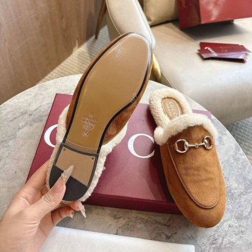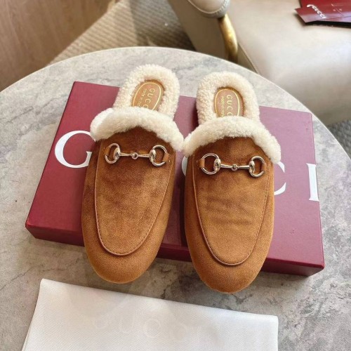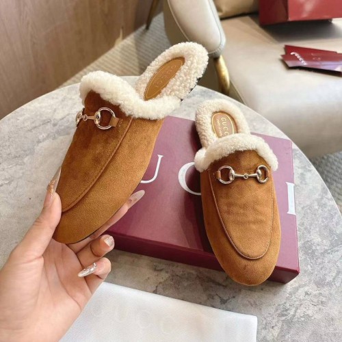 Коричневые зимние женские мюли Gucci из натуральной замши и меха. Уютные зимние мюли не только позволят вам собирать расслабленные городские образы, но и надежно защитят в зимние холода. Минималистичный силуэт, дополненный тонкими деталями, позволяет сделать мюли частью базового гардероба. В нашем интернет-магазине вы можете купить копии мюли с доставкой по Москве и по всей России.