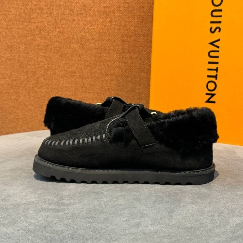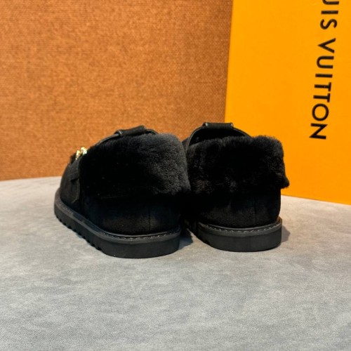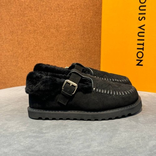 Черные зимние мюли Louis Vuitton из натуральной замши и меха. Универсальный силуэт дополняют ремешок и подошва, защищающая от скольжения. За комфорт отвечают подкладка и стелька из натурального меха, обеспечивающие оптимальную температуру. В нашем интернет-магазине вы можете купить копии мюли с доставкой по Москве и по всей России.